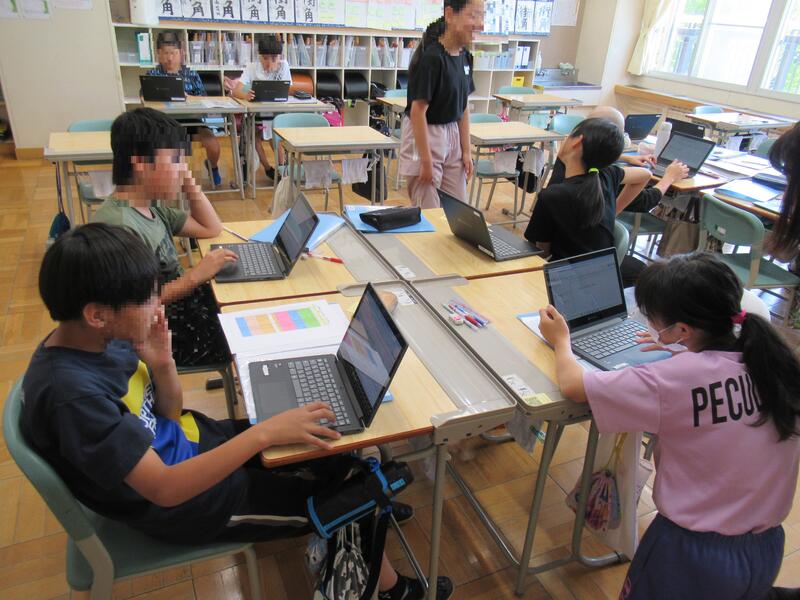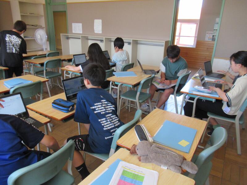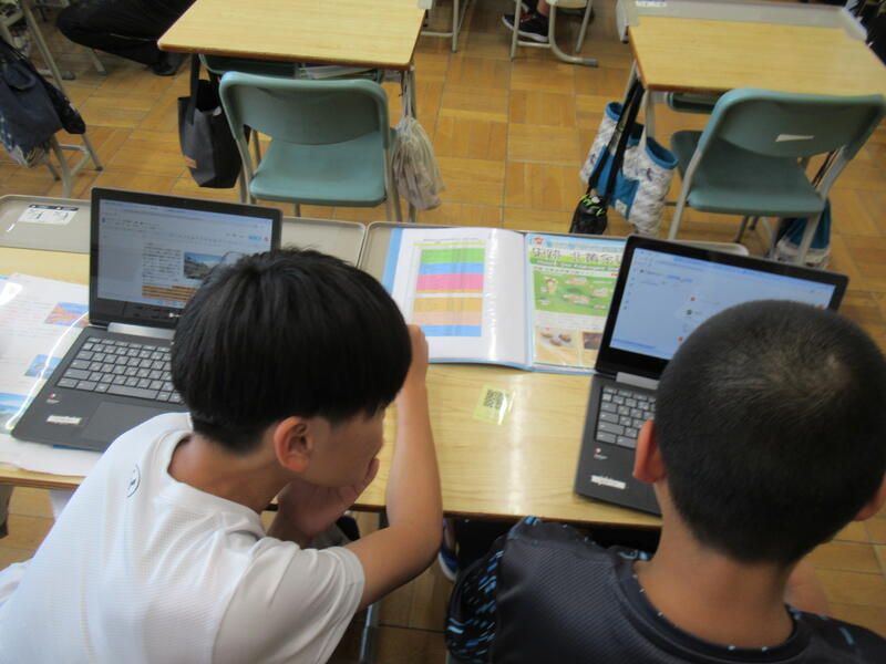 6年生 修学旅行のしおりづくり 投稿日時 : 07/09 編集長 カテゴリ: 6年生が、夏休み明け、8月の修学旅行に向けて取組を進めています。修学旅行のしおりは、ページを分担して作成し、最後に1冊になります。6年生は自分の役割に応じて、手際よくタブレットで検索しながらしおりづくりを進めていました。