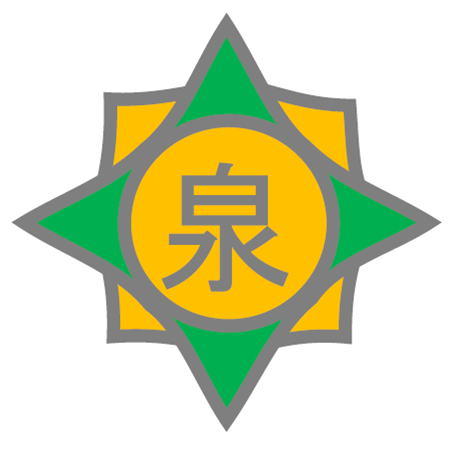 中央に泉沢小学校の「泉」の文字を配し、様々な力が泉の如く湧き上がるように願っている。「泉」を囲む円は、円満な人格形成を意図しつつ、太陽をイメージして図案化している。
