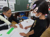 12月5日に講師をお招きして、小学校で点字の体験を行いました。視覚障がいのある方に対してどのように点字で自分が関わっていけるのか体験しました。子どもたちは自分の名前を点字をつかって表現したり文章を点字にする体験をしました。
