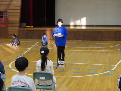 冬休み明けの全校集会(バク集会)では、まず校長先生から学校目標についてのお話がありました。 「アンケートの結果、本校の子どもたちは『やさしい子』『元気な子』として大変よく頑張っています。一方で『進んで学ぶ子』にはまだ伸びしろがあるため、後期後半はそこを意識して頑張りましょう」という内容でした。 一人ひとりが自分で決めた目標に向かって、しっかりと取り組んでほしいと思います。