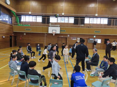 集会の最後には、生徒会が中心となって「なんでもバスケット」を行いました。小学1年生から中学3年生まで、みんなで和やかに楽しい時間を過ごすことができました。