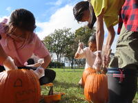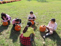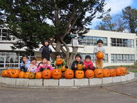 10月24日(金)に小学校でジャック・オー・ランタンづくりを実施しました。近くの農家さんから提供されたオレンジ色のカボチャに自分でデザインした顔をつくります。カボチャは堅いですが上手にできました。お時間があれば校舎前の花壇のところにありますので是非見に来てください。