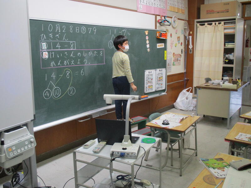 サクランボとバナナ計算をしていました。前に出てみんなにしっかり説明できました。