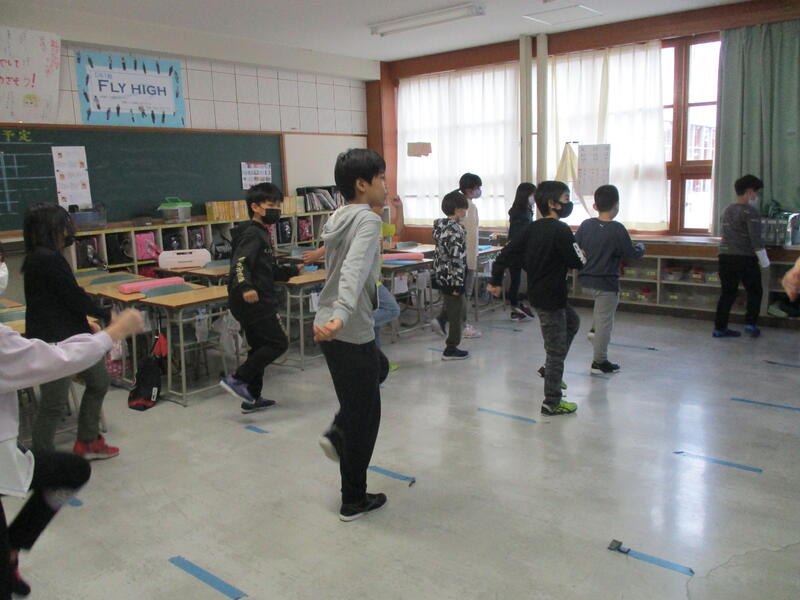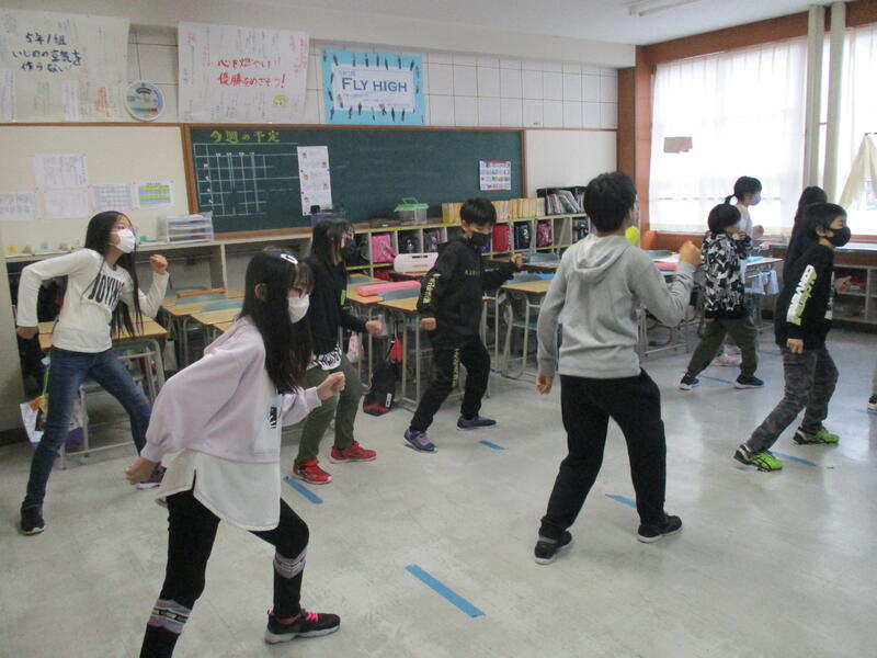 筆者が廊下を歩いていますと、5年生の教室からビートのきいたミュージックが流れてきました。ダンスの練習をしていました。とてもリズミカルに踊っていました。