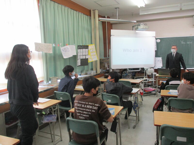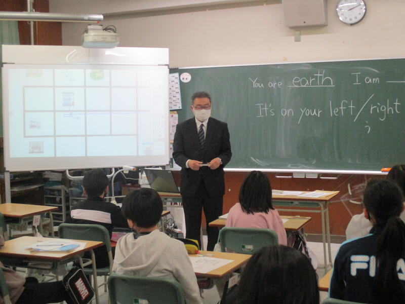 今回は、向陽台中学校の英語の先生が出前に来てくれて、英語の授業をしてくれました。中学校の先生が準備のために授業の少し前に教室に入ると、「先生、おはようございます。よろしくお願いします。」さすがは、児童会長です。さわやかな挨拶でした。