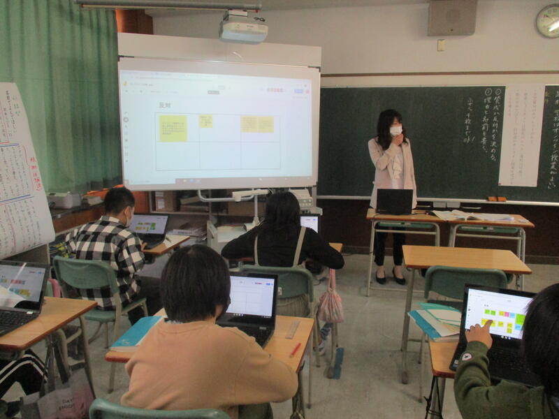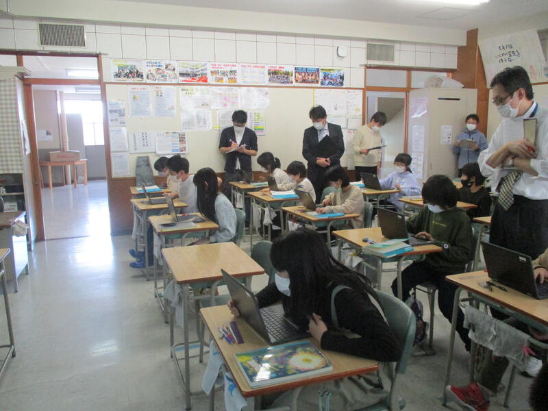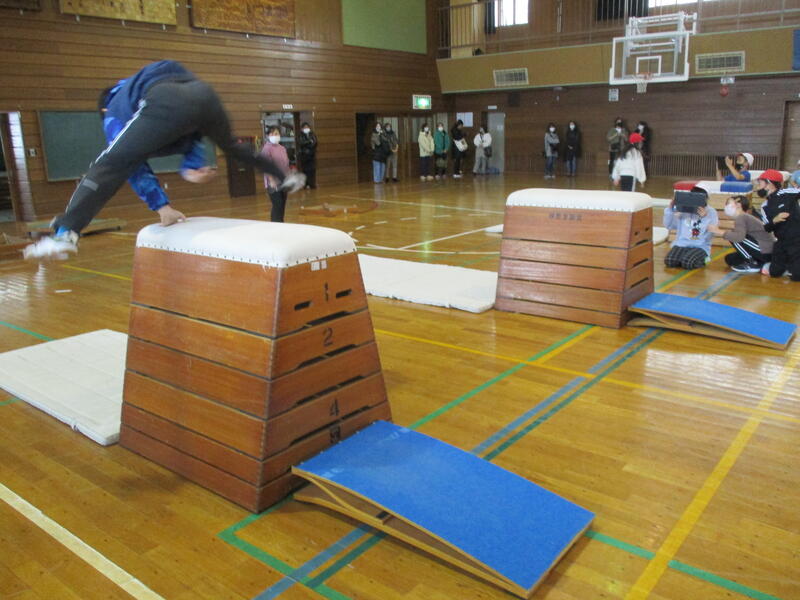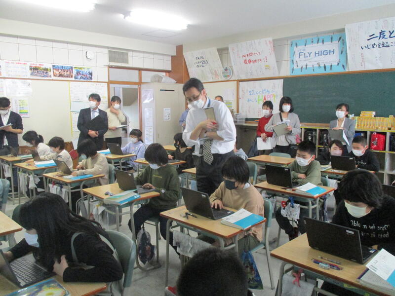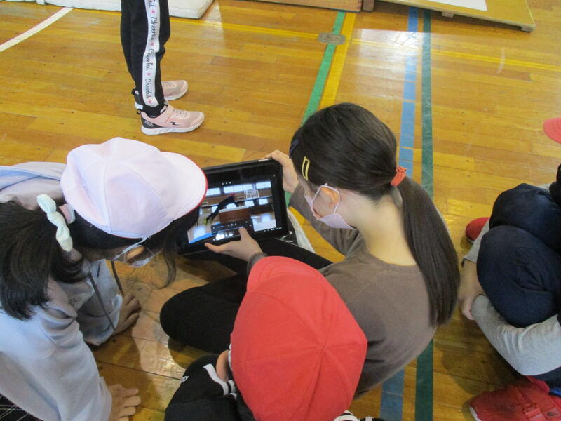 教科は体育でした。内容は、ただの開脚跳びではなくて、「自分の跳び箱のフォームを友達にタブレットで動画に組み込んでもらい、どうしたらさらにフォームをよくできるかその映像を見てグループで話し合う」というITCを駆使した体育を行いました。