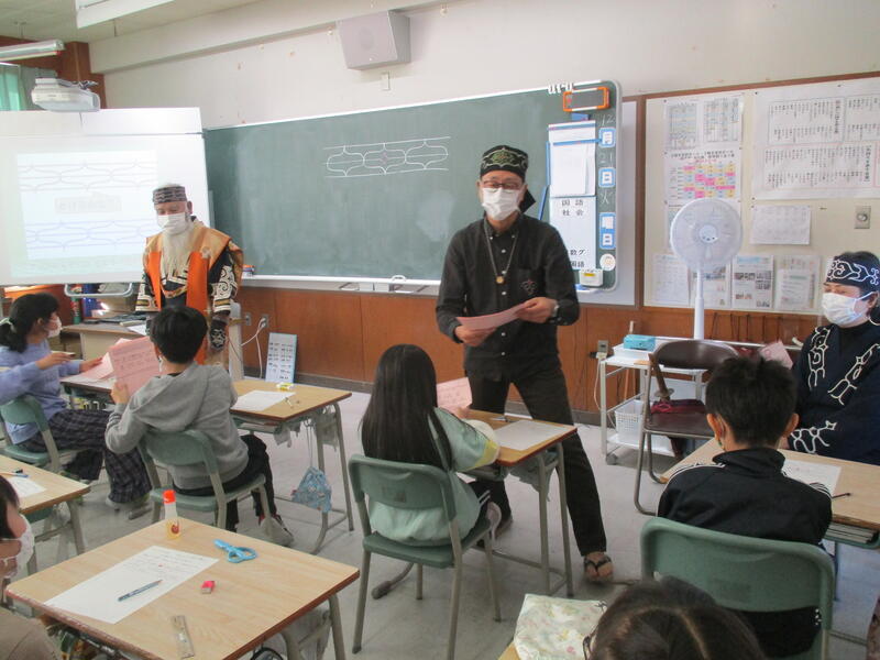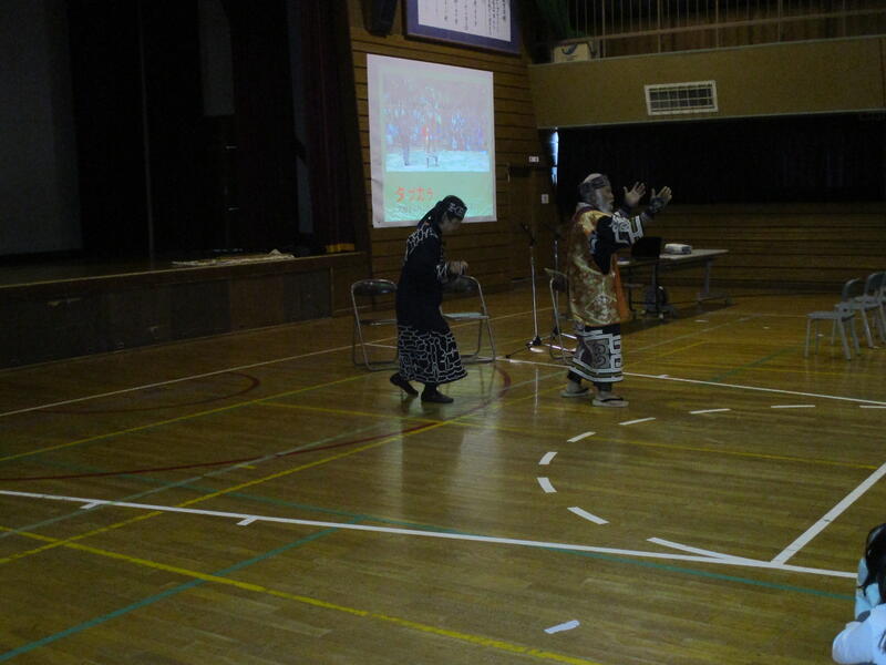 向陽台小学校では、初めての授業です。現代は「多様性の時代」と言われています。横文字で言えば、「ダイバシティ」と言います。いろんな人種、民族等々多様性をあるがままに受け入れていこうという世界的な考え方です。4年生は、その一環で学習するよい機会を得ることができました。アイヌの方々の言葉や、模様、衣装、歌、おどり等を実際に体験しました。3人の講師の方々、本当にありがとうございました。