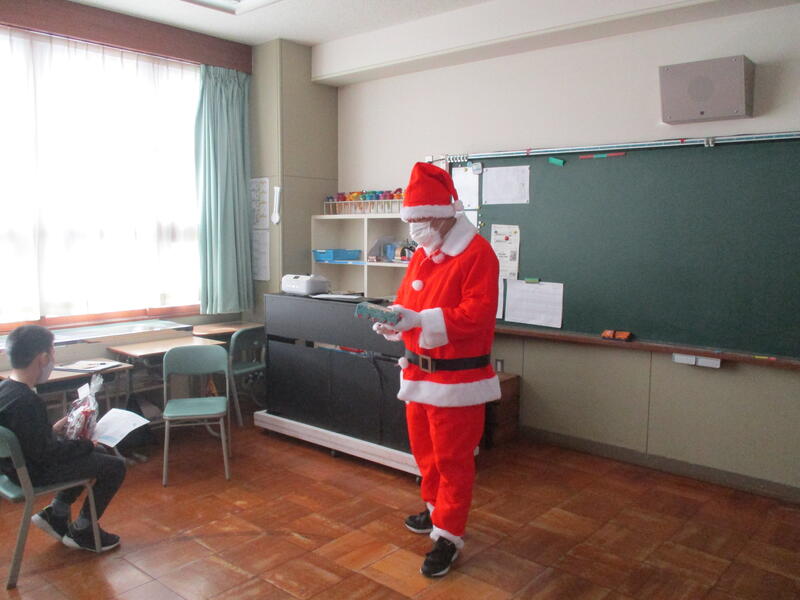 あおぞら学級に、サンタクロースが来たようです。一人一人がプレゼントをもらってご満悦です。