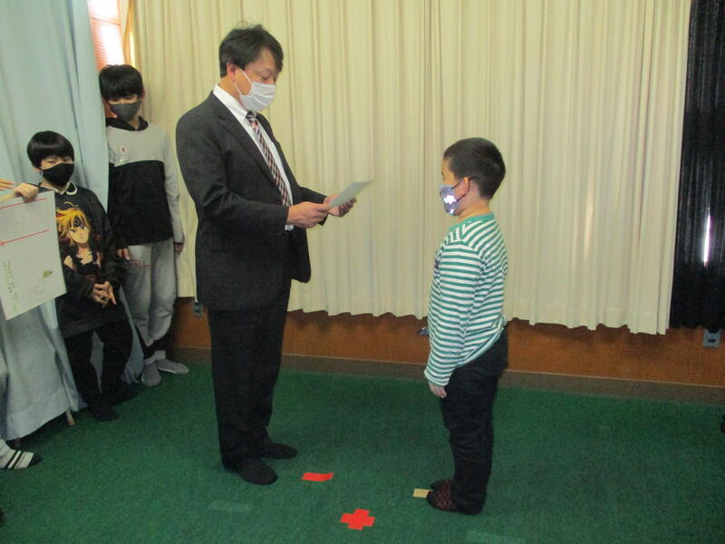 「自学スペシャリスト」の表彰を行いました。ノート作りや内容がより上手な児童が選ばれます。