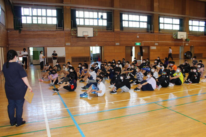 小中一貫教育の取組が具体的に始まりました。本校と泉沢小の6年生が、5,6時間目に向陽台中学校に“体験登校”をしました。泉沢小6年は2クラスあるので、人数的にもうちの6年の2倍います。はじめは、人数や違った環境に飲み込まれ気味になり、緊張していましたが、体育館で「アイスブレーク」などをして泉沢小と話したり体を動かしているうちに、かなり慣れてきました。