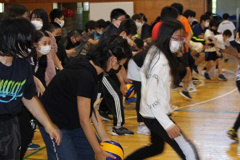 【2校混ざり、ボールなどを使ってアイスブレーキングしました。】