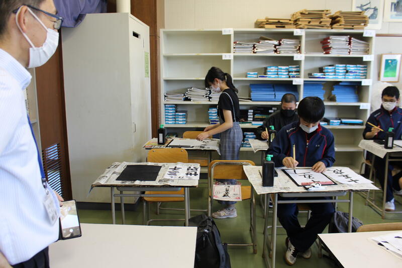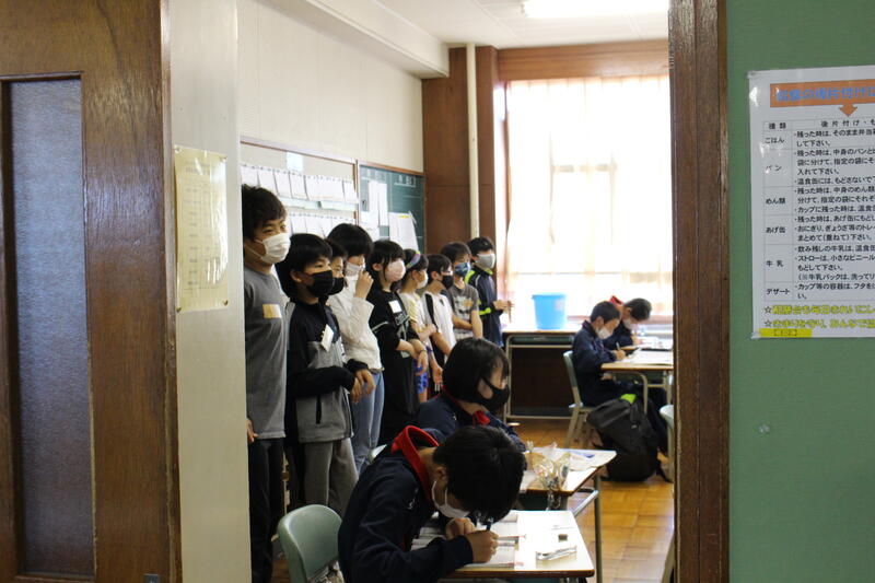 中1~3年の授業の参観もしました。中には、お兄さんお姉さんにひやかされてもじもじしていた場面もありました。