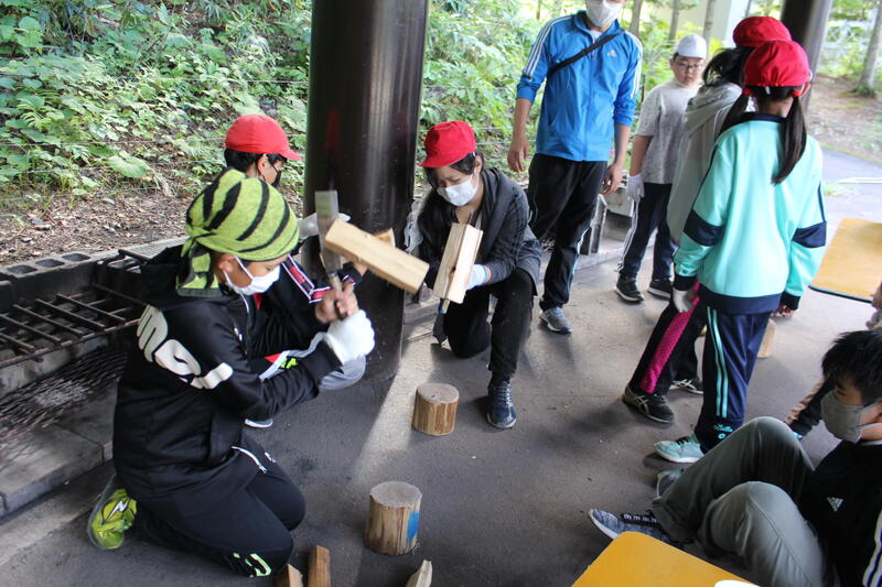 【全員が薪割りに挑戦しました。とっても、うれしそうでした。ドキドキ・ワクワクいい表情してました。】