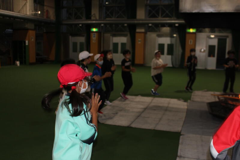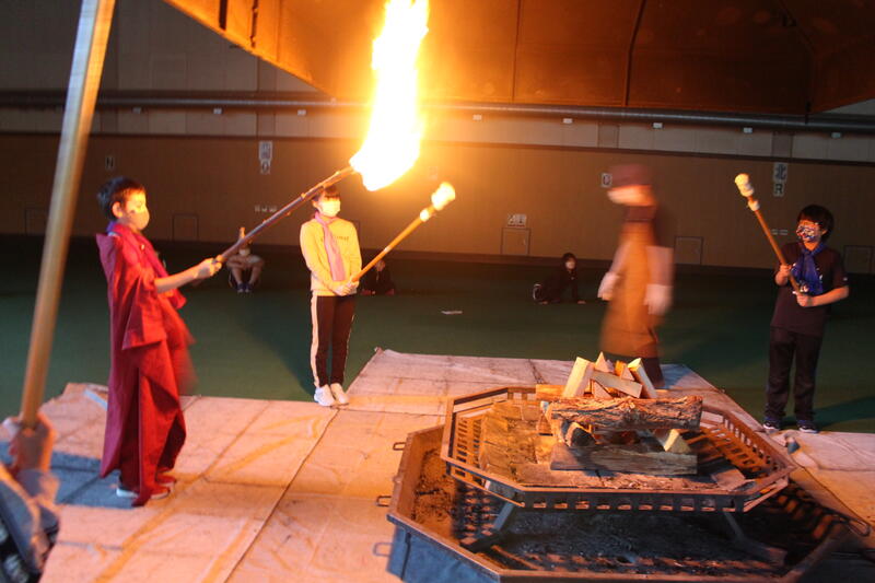 【その後、『ハンカチ落とし』と『爆弾ゲーム』をして、ますます盛り上がりました。子供たちの高らかな笑い声に火の神々も大満足です。終了時間ギリギリまで、みっちり満喫させていただきました。】