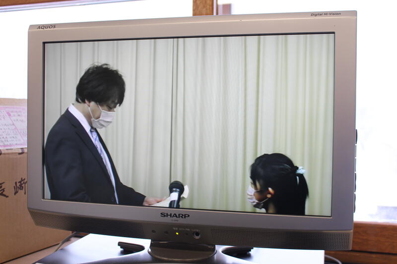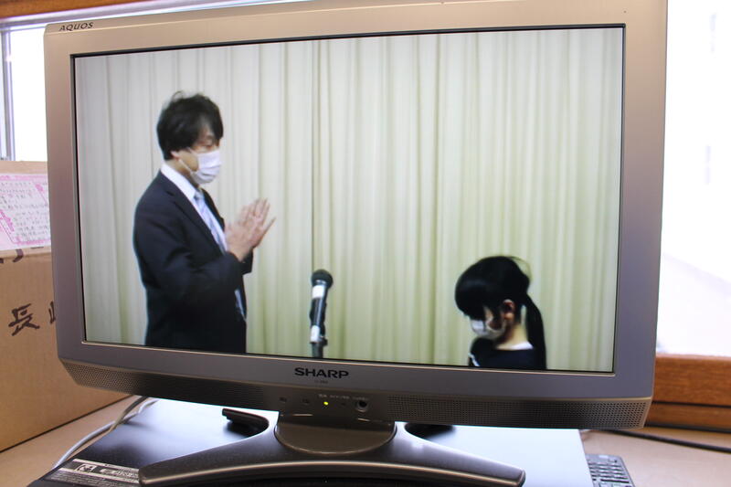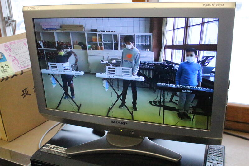 【今回は、あおぞら学級が素敵な演奏をしてくれました。「キラキラ星」をキーボードで演奏し、「もののけ姫」をリコーダー演奏しました。職員室のモニターから見ていましたが、職員室にいた職員から「すごーい!きれいにハモっている!」歓声が聞こえていました。3人の姿を見たとき、YMOを思い出してしまいました。】