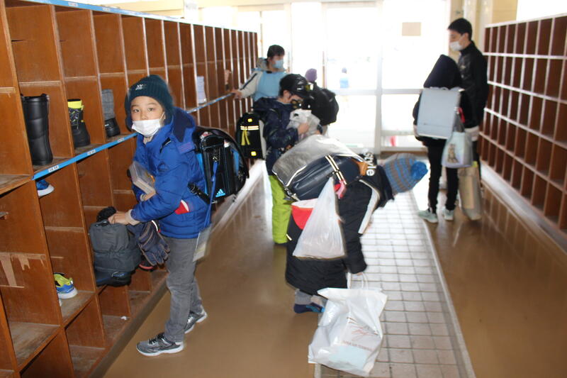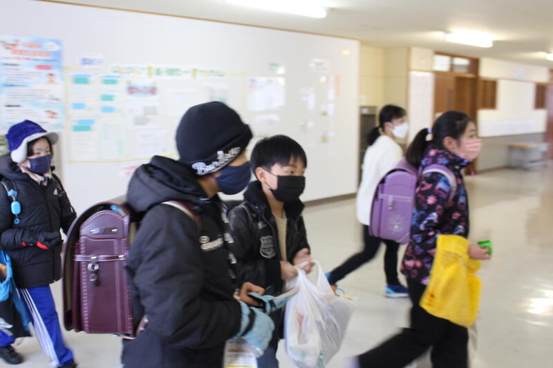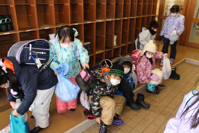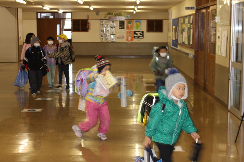 【下校時間になりました。みんなとってもすがすがしい顔をして、玄関にやってきました。「よいお年を、教頭先生!」という声がうれしかったです。