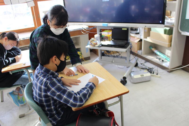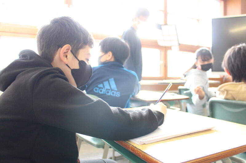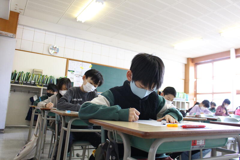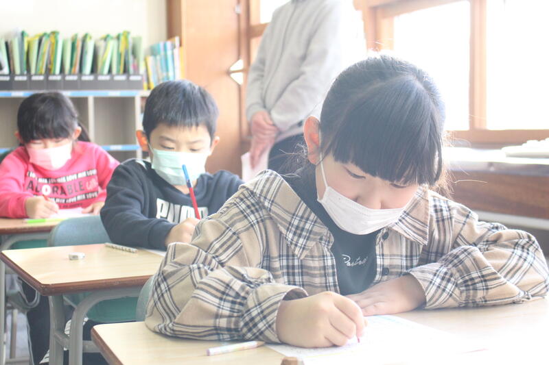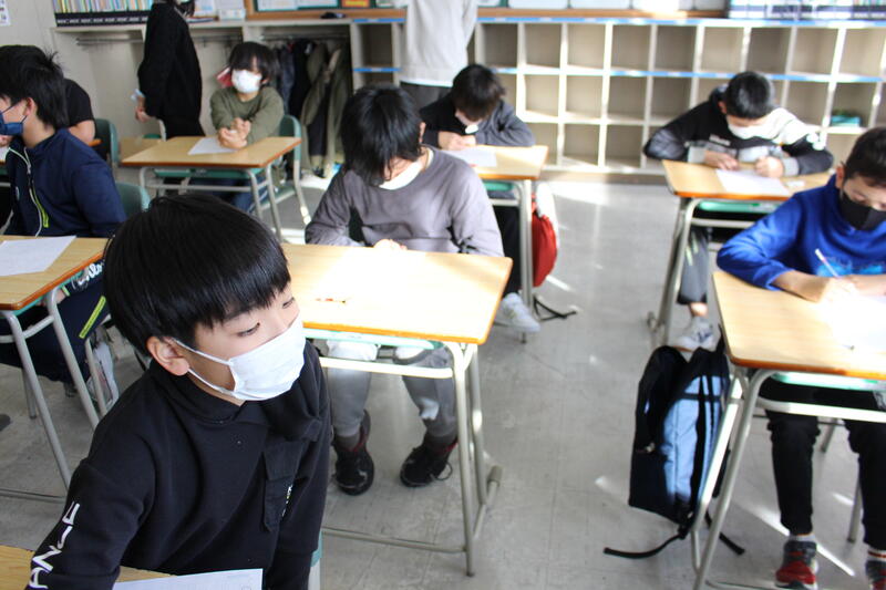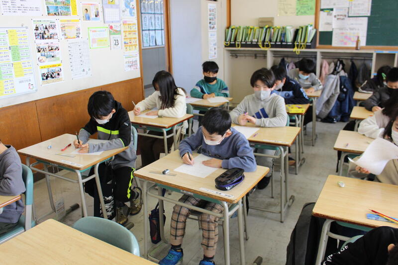 【5,6年生の教室に入っていくと、シーンとして誰もが集中して取り組んでいました。】