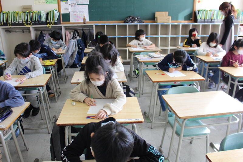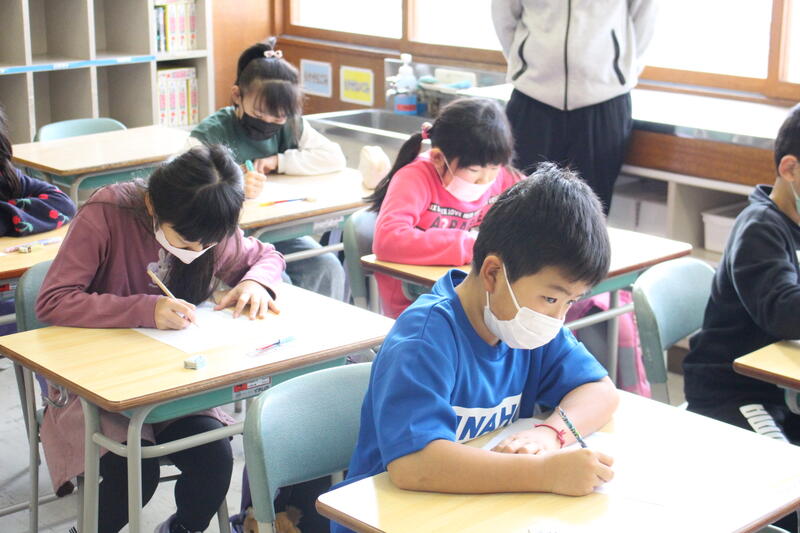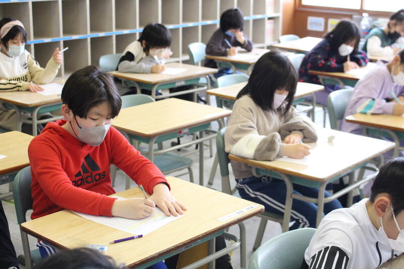 【3、4年生もシーンとして、シャッター音も気になるくらいの静けさです。向陽っ子は、いつでも集中できます。】