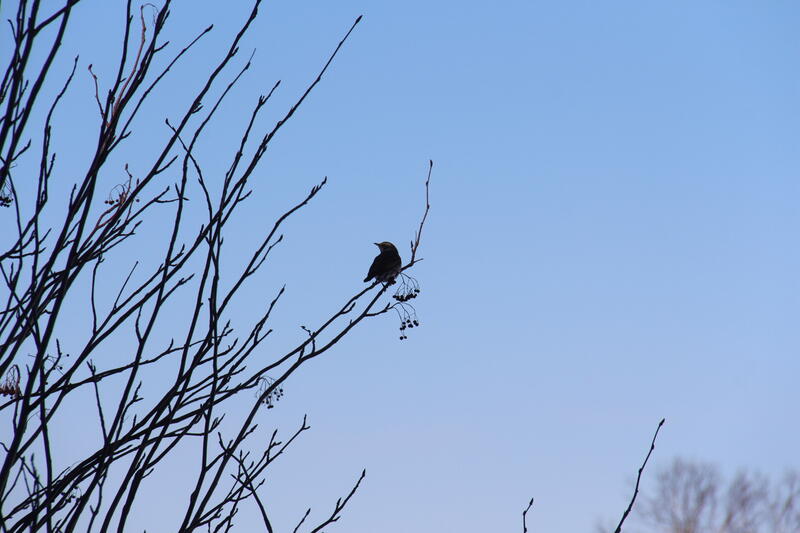 【職員室前の木々には、毎日のように鳥が遊びに来るのです。「ヒヨドリ」「カワラヒワ」そしてわが校のシンボルの鳥「アカゲラ」も来たのです。】