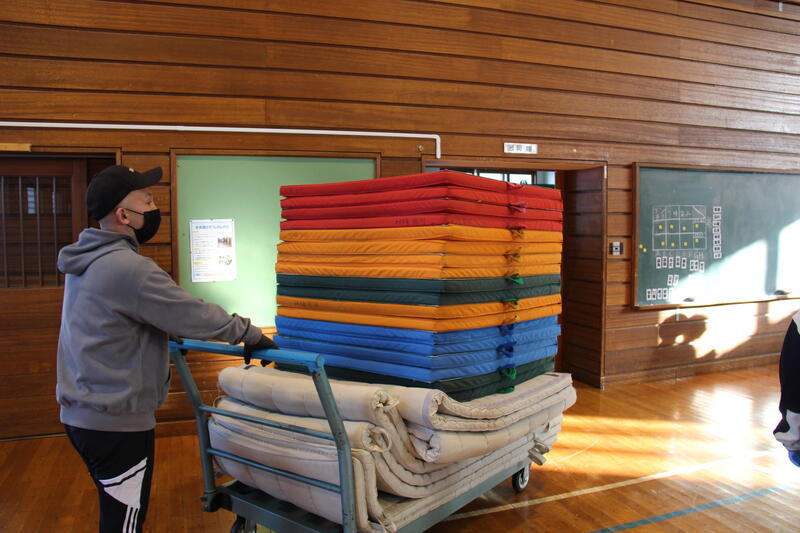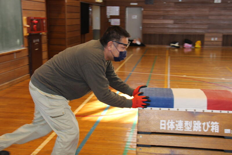 【器具室の器具を全部出し、41年ぶり?に床をみんなで拭きました!! 腰が…あっ、痛】
