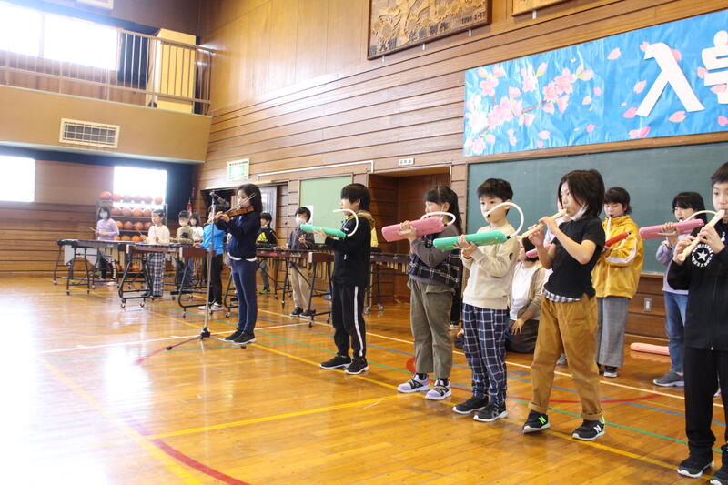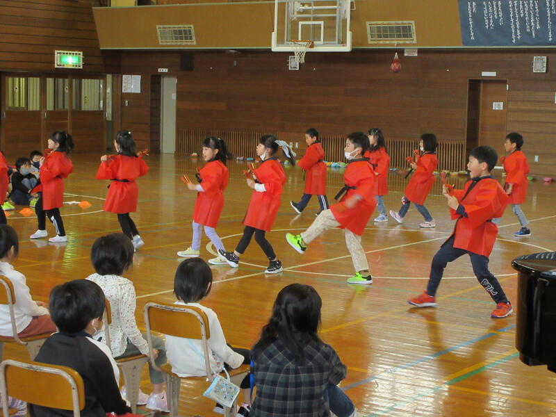 4月28日(金)に「1年生を迎える会」が、児童会の司会進行で行われました。2年生以上の各学年が1年生のためにがんばりました。2年生は、よさこいを披露し、3年生は花のアーチを作り、1年生を迎えました。4年生は1年生の入退場時に「さんぽ」を演奏しました。5年生は1年生へのインタビューを行い、6年生は学校のきまりクイズをしました。1年生はそのお礼に「はじめのいっぽ」という歌を振りつけを入れて歌いました。とてもあたたかみのある会になりました。
