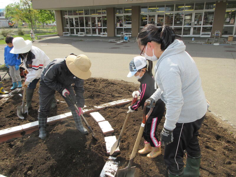 5月13日(土)に「PTA春の奉仕作業」が行われました。玄関前の花壇と、グラウンド横の教材園(畑)に肥料をまき、土起こし等を行いました。これで、15日以降、花や野菜の苗等を植えることができます。手伝ってくださった保護者の皆様、児童の皆さん、ありがとうございました。