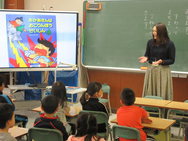 5月17日(水)の朝読書の時間に、PTAの方で構成された、図書関係のグループ「森ック」様より、1・2年生と3年生に「絵本の読み聞かせ」をしていただきました。「おかあさんは おこりんぼう せいじん」「ぶたのたね」などのタイトルの絵本を読み聞かせしていただきました。子どもたちも集中して、楽しそうに聞いていました。森ックの皆様、ありがとうございした。