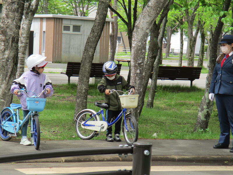 5月22日(月)2年生が、道の駅の近くにある「交通公園」に行き、「交通安全教室」を行いました。子どもたちは、実際に自転車に乗って、交通指導員さんから正しい自転車の乗り方を教わりました。