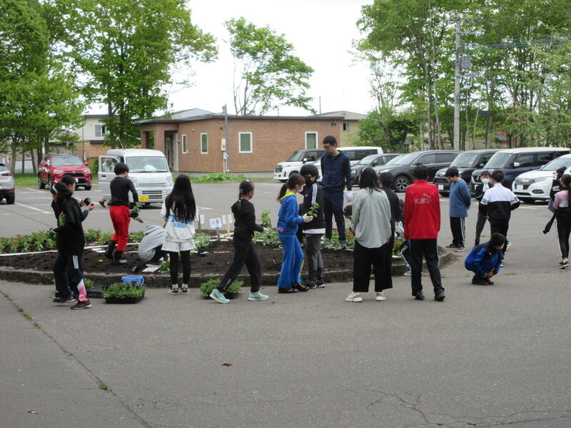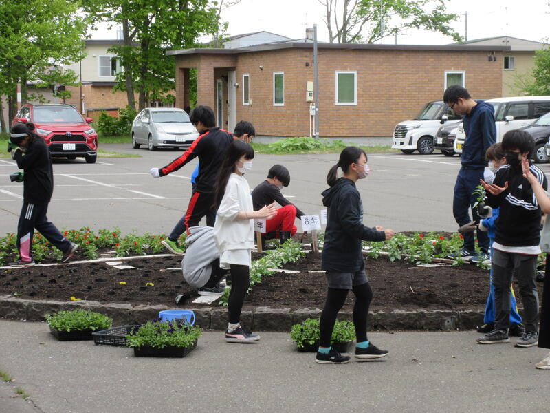 5月23日(火)6年生が花壇の花植えをしていました。まじめに作業に取り組んでいました。