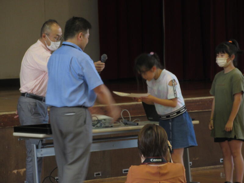 7月21日(金)、夏休み前の最後の登校日に「向陽っ子集会」が行われました。校長先生から4月今までがんばったこと、あいさつの大切さ、夏休みにがんばることや、事故などに気をつけることなどのお話がありました。また、1年生からは、一人一人の児童が、4月から今までがんばったことを発表しました。児童会長からのお話の後、最後に、家庭学習をがんばった児童への表彰がありました。夏休み、事故や病気に気をつけ、元気に楽しく過ごしてほしいと思います。