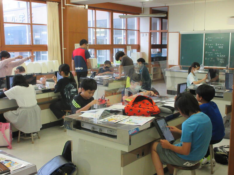 7月24日(月)と25日(火)に「夏休み学習サポート」を行いました。希望者のみ登校し、AIドリルなどが入っている「ミライシード」に取り組んだり、夏休みの宿題などに取り組んだりしました。千歳科学技術大学の学生さんにも「学生ボランティア」として来校していただき、児童の支援にあたってくれました。