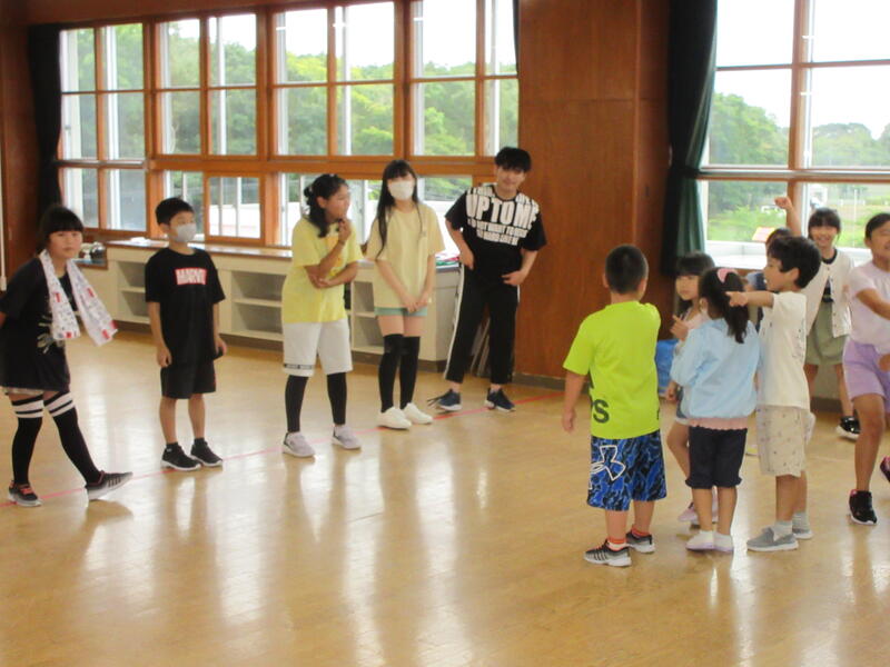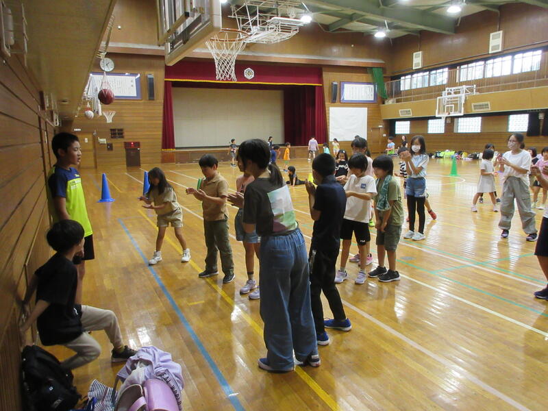 8月30日(水)、「向陽っ子タイム」を行いました。当初は各分団(下校の方面別で分かれた、1~6年生の異学年で構成されたグループ)で公園などのゴミを拾う予定でした。しかし、雨天のため、分団ごとに「何でもバスケット」「だるまさんがころんだ」「ハンカチおとし」等のゲームを行いました。異学年の子どもたち同士で交流して、子どもたちはとても楽しそうでした。