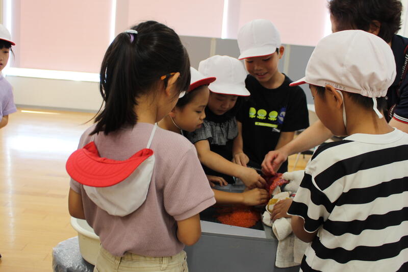 9月15日(金)に、2年生が「社会見学」に行ってきました。行き先は「さけのふるさと千歳水族館」。行く時は、貸し切りバスではなく、普通の路線バスに乗って行きました。運賃を自分で払う等の体験をしました。水族館では、クイズを解きながら見学を進めました。また、さけの卵を取り出して、受精させる体験も行いました。2年生は、公共のマナーをしっかり守りながらバスに乗ることができました。また、水族館見学時は、目をキラキラさせながら、とても意欲的に見学していました。