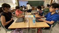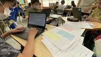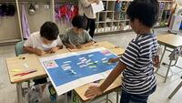今回の授業では、その情報をもとに「分かったことをスライドにまとめあげ、お互いの成果を評価していく」という内容に挑戦しました。各グループのメンバーは共同作業を通じてスライドを作り上げ、その後、さらにより良いものにするために話し合いながら調整を行いました。子どもたちは意見を交換し合いながら、真剣な表情で取り組んでいました。一人ひとりの考えが反映されたスライドは、どのグループも個性豊かで魅力的です。最終的に完成したスライドは次回見せ合い、相互に評価し合う場面が持たれるようです。