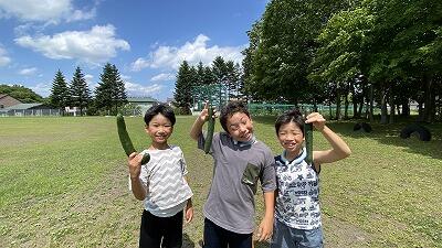 私たちの花壇や畑は見事な成長を遂げ、美しい花々と豊かな作物で溢れています。皆さんの早朝からの手入れのご協力と自然の恵みに感謝しながら、その成長が楽しみな毎日です。1年生の育てている朝顔も三色に咲きました。