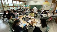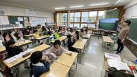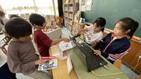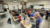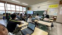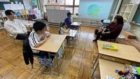朝は気温が下がってきていますが、元気な挨拶や賑やかな声が響いています。4・5・6年生の教室では、森ックさんによる読み聞かせがあり、みんな目をキラキラさせてストーリーを楽しんでいます。朝の会では、2年生が学芸会での歌の練習をしていました。