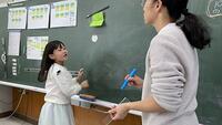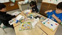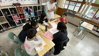 3年生の算数の授業では、習熟別クラスに分かれて「何でそうなるのか」を説明する練習をしていました。みんなで考え方を学ぶ姿がとても良いと思います。