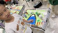 あおぞら学級の体育の授業では、マット運動で体の動かし方を考えながら練習しました。休み時間には、いろいろな学年の児童が遊びに来て賑やかです。職場体験学習では、作業場見学を行い、タオルのたたみ方やトマトの箱詰めを体験しました。何事にもチャレンジしようとする姿勢が素晴らしいと思いました。