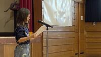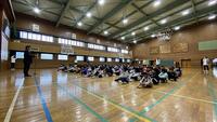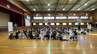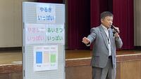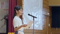 前期の出来事を振り返りながら、校長先生の話と児童代表の作文を全校児童で聞きました。