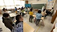 1年生は、校長室に「さようなら」とあいさつに来て帰りました。