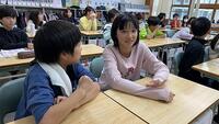 6年生の英語の授業では、会話の練習や考えを交流するシーンが見られました。課題をクリアできるよう、それぞれが必要な作業をして学習しています。みんな笑顔で真剣に取り組んでいる姿が素晴らしいと思いました。