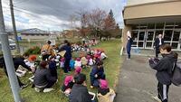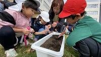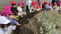 1年生が、つくし幼稚園・向陽台保育園、そして向陽台中学校の職業体験の生徒さんたちと一緒に、チューリップの球根植えの活動を行いました。