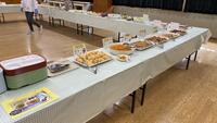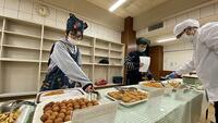 6年生だけが楽しめる特別なバイキング給食が行われました。3階の多目的室にはテーブルが並べられ、おいしそうな料理がずらり。6年生の皆さんは、食べたい料理を好きなだけおかわりし、笑顔で食事を楽しみました。