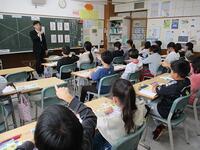 授業では、海に漂うプラスチックごみが生態系に与える影響や、微細化したプラスチック(マイクロプラスチック)が魚や鳥に及ぼす危険性についての説明があり、子どもたちは真剣な表情で話を聞いていました。