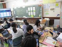 校内研修の一環として、5年生の国語の授業が教職員全員で参観しました。この授業では、「作品が伝えたいこと」をさまざまなテーマから追求し、子どもたち自身が見つけ出すことを目標としました。