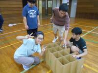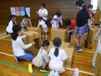 教室では、段ボールベッドを実際に組み立てたり、クラッカーの缶を缶切りで開けて食べたりする体験を行いました。