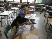本日、実施した「夏休み学習サポート」には、多くの児童が参加し、静かな雰囲気の中で集中して学習に取り組む姿が見られました。