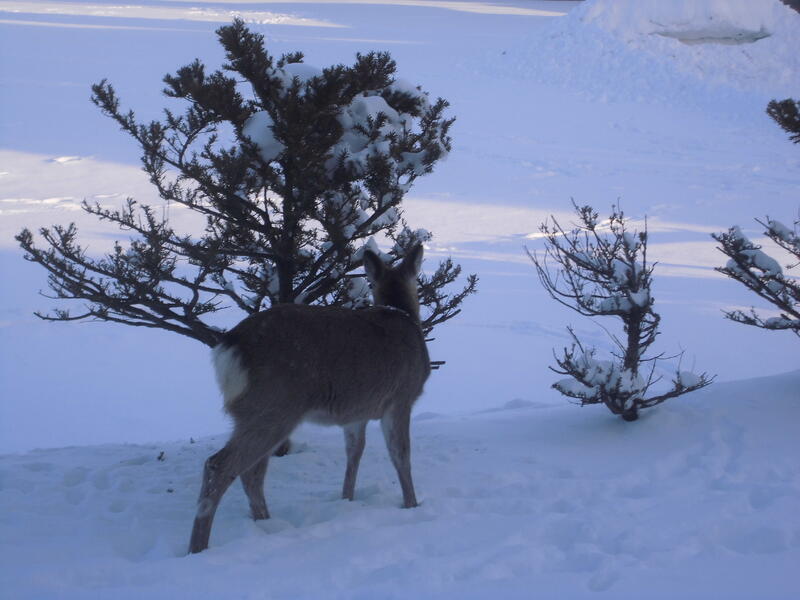夕方、訪れて木の葉っぱを食べていました・・・・