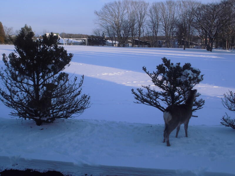 グラウンドには、たくさんの無数の足跡が・・・・・シカです!
