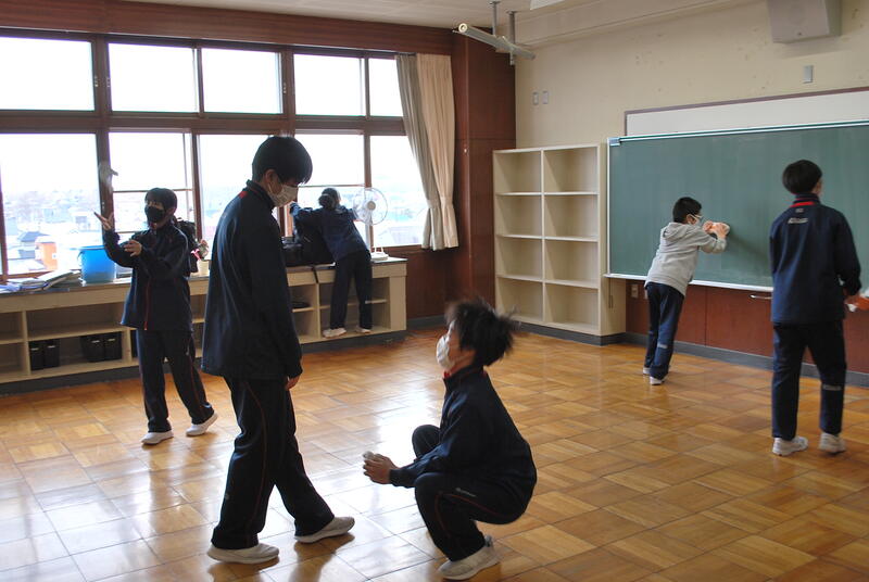 1教室に、1年生から3年生までが入り一緒に学習しました。